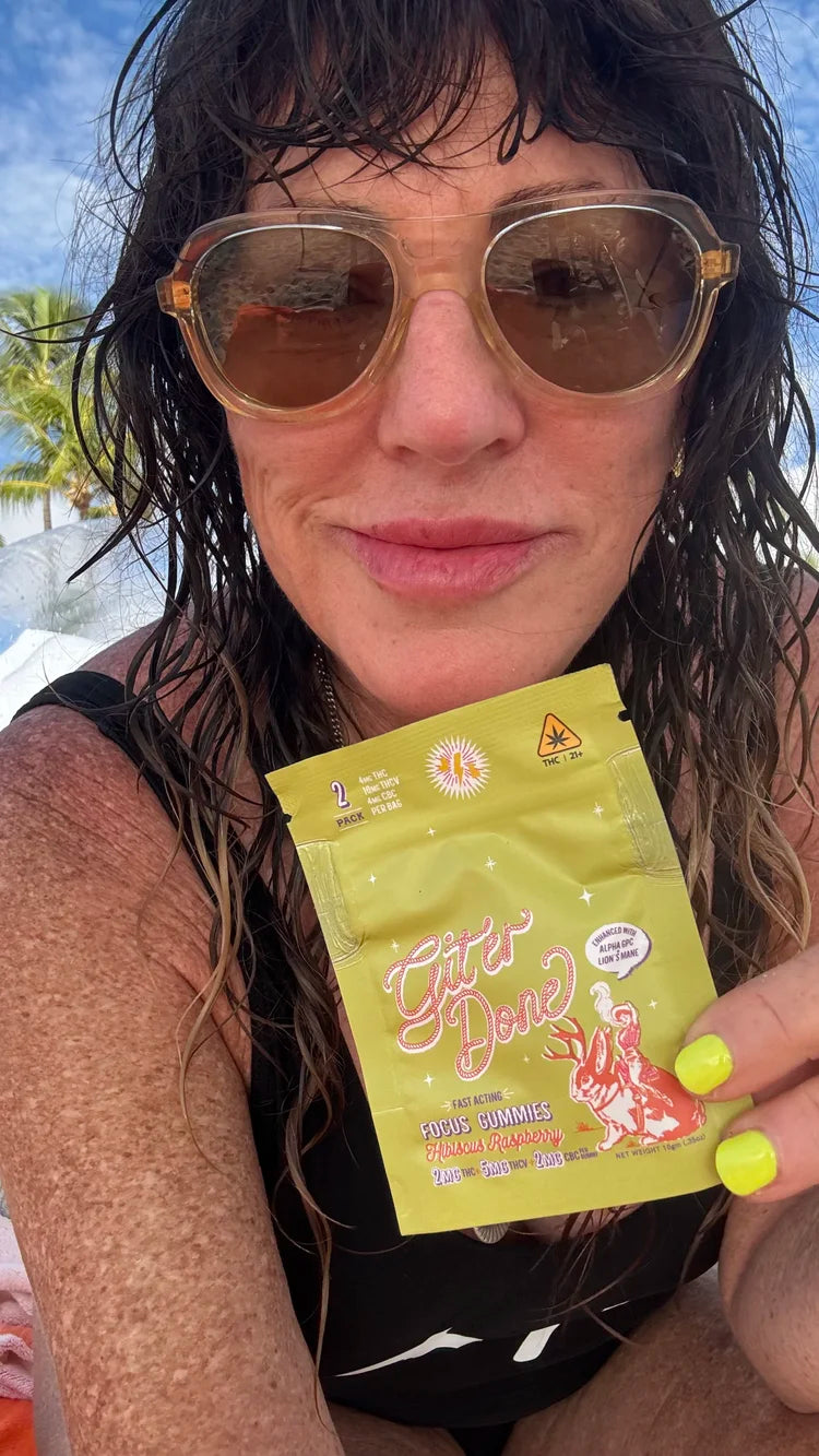 This is my passion project. Gitβer Done is the gummy equivalent of a productivity boost. Undiagnosed but pretty sure, it helps me focus like a laser beam when I need to clear my to-do list.